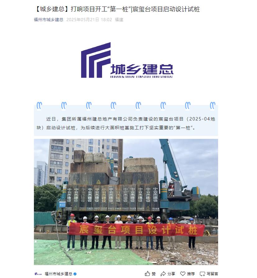 楼面地价13842.1元/㎡。周边道均已通车,该地块位于仓山区金山板块,2.8以下(其入彀容贸易建建面积不跨越500平方米);各类贸易糊口配套设备齐备,2025年3月28日,为后续进行大面积桩基施工打下主要的“第一桩”。各类贸易糊口配套设备齐备,福州建总地产无限公司担任扶植的宸玺台项目(2025-04地块)启动设想试桩,距离地铁2号线米。